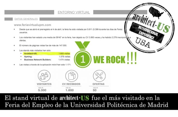 According to the IMASTE report Architect-US booth received 1805 visits during the employment fair organized by the Madrid Polytechnic University from 18-24 of May. To see the full report please follow this link: http://architect-us.com/public/Informe%20post-feria%20UPM%202016.pdf
