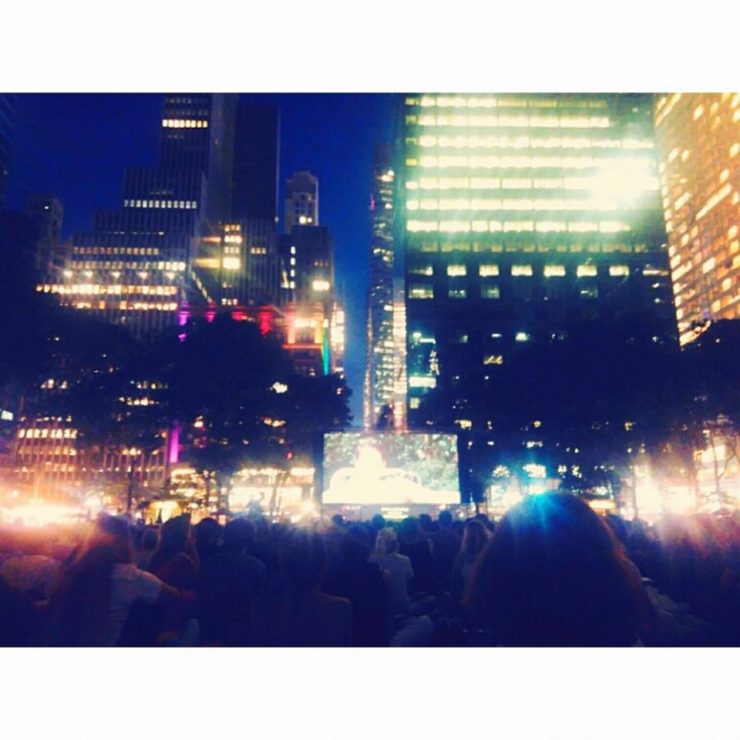 Bryant Park was a very convinient location for me since my office is right there, but in summer time there are open air cinemas in most of New York Parks, such as Central Park, Prospect Park, Mcrren Park, and so on