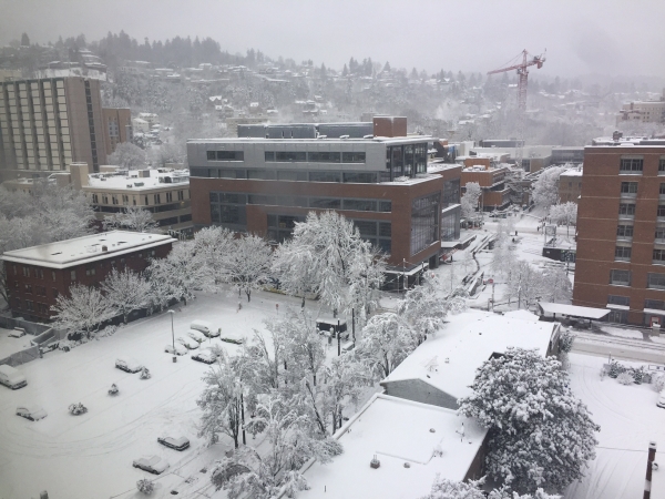 When talking to people from here, they have told me that it hardly snows in Portland (maybe once a winter). However in the past two months, we have had five snow storms being the last one the biggest snowfall (at a time) in the past 50 years.
