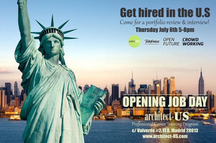 Building in Madrid for Architect-US Job Openings Day on July 6th at 5 pm. We’ll be conducting interviews and reviewing portfolios of young architects that are interested in working in the USA, or just would like to know us better and get our professional opinion on their portfolios.