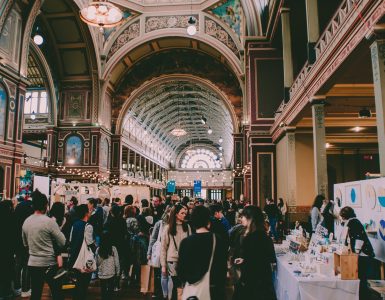 The hands of a woman interlaced in the middle of the scene. A neck covered with a bright and brilliant piece of jewellery. Dark hair, white skin.