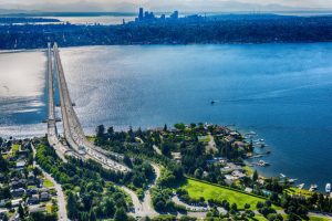 If you work in the closeby town Bellevue, you will have the great experience to drive across the longest floating bridge in the world every day. It’s a nice moment when you feel surrounded by water in the middle of Lake Washington.