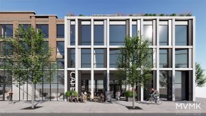 So that said it is always a good approach to carefully pay attention to detail and design to these kinds of projects which are becoming more popular and interesting. The rendering attached is a recent building that was designed at MVMK even though there is no existing historical building the facade involves the design of an old looking building with a modern addition in front. We can clearly see the difference of materials but still certain harmony prevails.