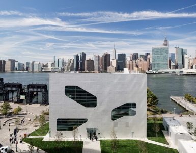 “A new public concrete library on Long Island (New York), with...