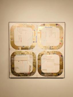 The most recent artist to be shown is Augustine Kofie with his series Rotationships. His work for this series relies on the collection of vintage pressboard sheets, from the 50s until the 80s, which were originally used in packaging. He uses them as the main material of the pieces, rearranging and repurposing those into the final artwork. This particular exhibition reminds me of the long nights of our degrees cutting cardboard and balsa wood for our beloved models. But his outcome is neater than my models ever were.