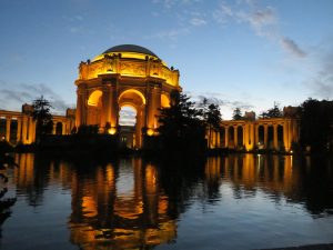Saturday was the perfect day to walk around along the Marina waterfront, eat something that we bought at the Farmers Market and charge enough energies to deal with the slope of the San Francisco´s streets. The architects who designed the master plan of this city, did not think about all the inconvenient of walking on the streets. That’s how you realize that the American cities are made for cars and not for the people. After a bit exhausting walk, we ended up in front of the “Palace of the Fine Arts”, completely illuminated in the evening. It is the perfect place to get lost in between their gardens and domes.