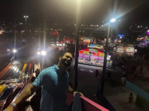 we went straight to the big slides, easy and quick first attraction to enjoy as a warm up. The second one was the swings, this attraction weren’t the biggest ones in the fair, and I am grateful for that because when it started to move, I completely regrated, my stomach felt it all. After that one, we went to two different attractions but the type that spin. To be honest, really bad idea. After the second one I need to sat down for a while or I was going to throw up. (Realizing how bad I felt with those attractions that years ago I enjoyed so much made me feel old, really old). Therefore, the next rides were the ones where you only sit down and enjoy the view.
