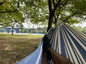 Holidays here a very limited, that’s why when you hear one is coming you must plan enough to enjoy the most. Labor Day was so far one of the most relaxing and beautiful days I have ever had in this country. I bought a hammock and drove to the riverside with friends, a hammock/picnic/Reading party was the plan for the morning, as usual Schuylkill River was majestic. For the afternoon we played Frisbee and enjoyed ourselves until it was time to go home.