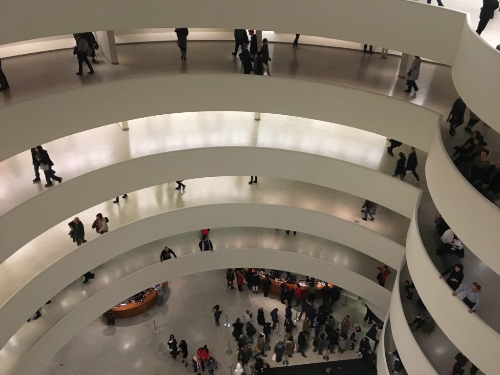 I had the opportunity to visit the Guggenheim Museum and it was an amazing experience. Definitely a must-visit museum as part of your architectural journey in New York. The Guggenheim Museum is a masterpiece of modern architecture and one of the greatest works of Frank Lloyd Wright. The building itself is totally amazing. From its pure white envelope to fine details in the structure, furniture design, exhibition space and layout, lights, and of course the rotunda, a 400-meter long concrete ramp attached to the exterior walls.