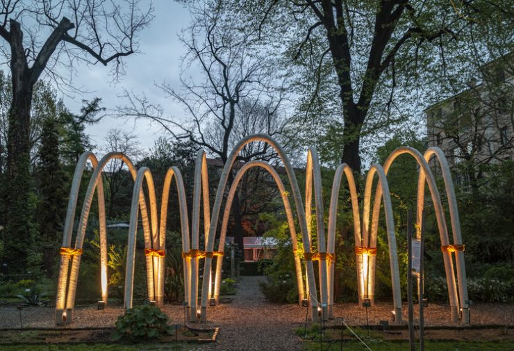 Carlo Ratti Associati, architect, engineer, inventor, teacher and activist who works in collaboration with the energy company Eni, has designed an original structure; “The Circular Garden”, whose structure is made with fungi, was cultivated from the soil made during the last six weeks. A series of arches that add up to one km in length will make up the structure.
