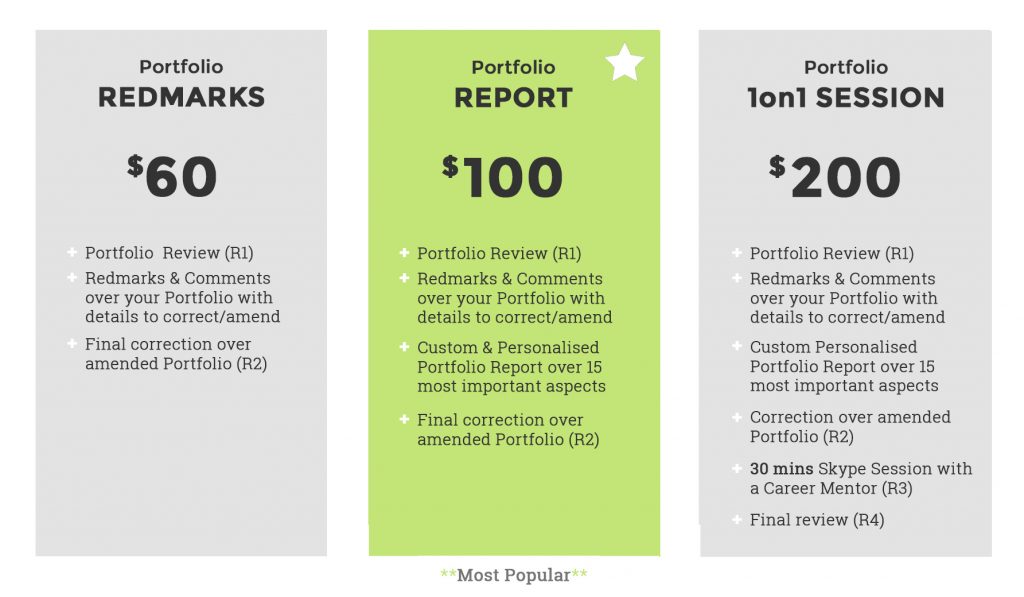 Below you will find the three services we provide within the Portfolio Plans and Career Advice Program, as well as a breakdown of what each offers: