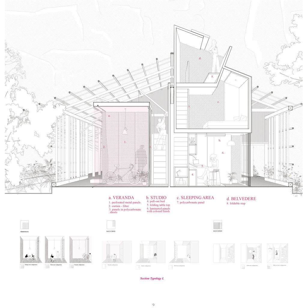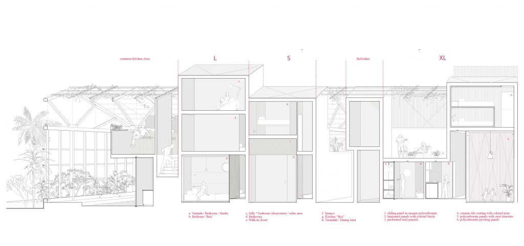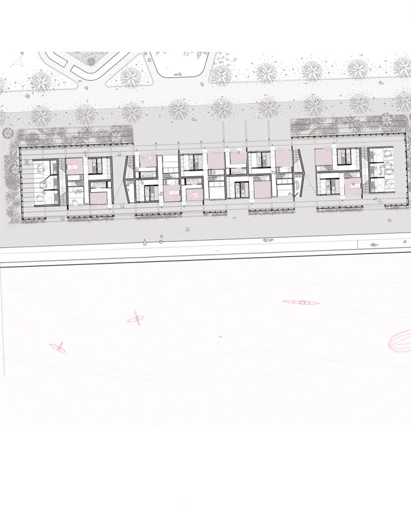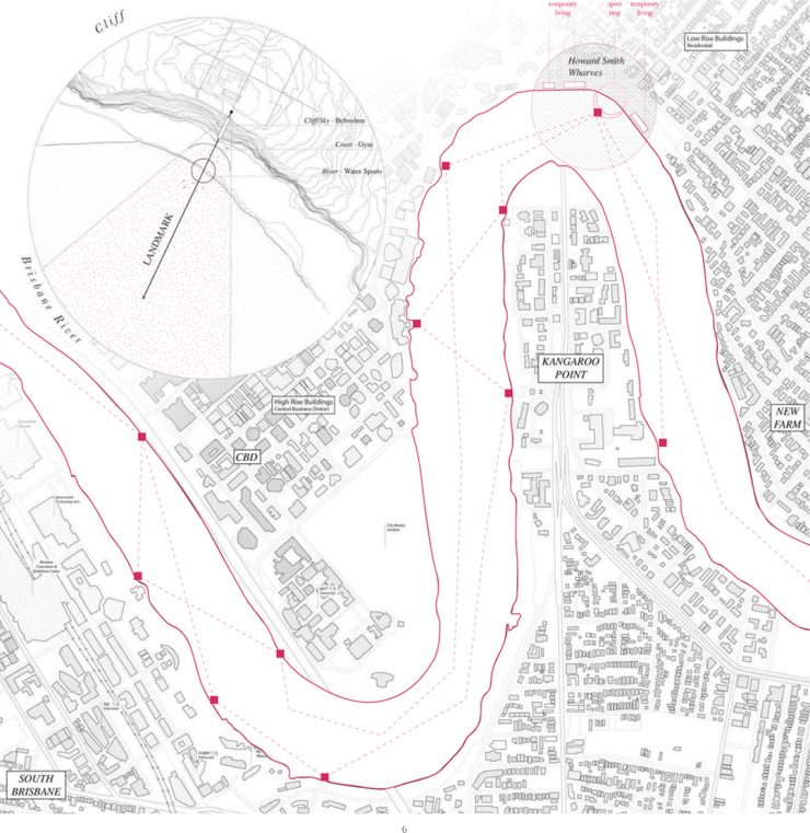 The project is located in Brisbane (Australia) in the Howard Smith Wharves area, the city’s first port dating back to 1939 and now in a state of neglect. For this area was expected, by the plan drawn by the municipal administration, an intervention for the recovery and restoration of the existing buildings and the transformation of this area into an attracting site and catalyzing tourist flows. Because of these characteristics and for its strategic geographical position within the city, the Howard Smith Wharves have become, in this recovery proposal, the essence of “living on the edge” for an entire city and the buildings that survived over time are transformed in the common veranda of a series of accommodations that embody the characteristics of the veranda: hospitality, threshold, filter. The sheds themselves, stripped of their buffer structure, become the common verandah of temporary housing that has arisen within it. A reconversion of old maritime sheds in hybrid structures between the receptive and the social housing, aimed at welcoming both tourists and “temporary” inhabitants of the city.