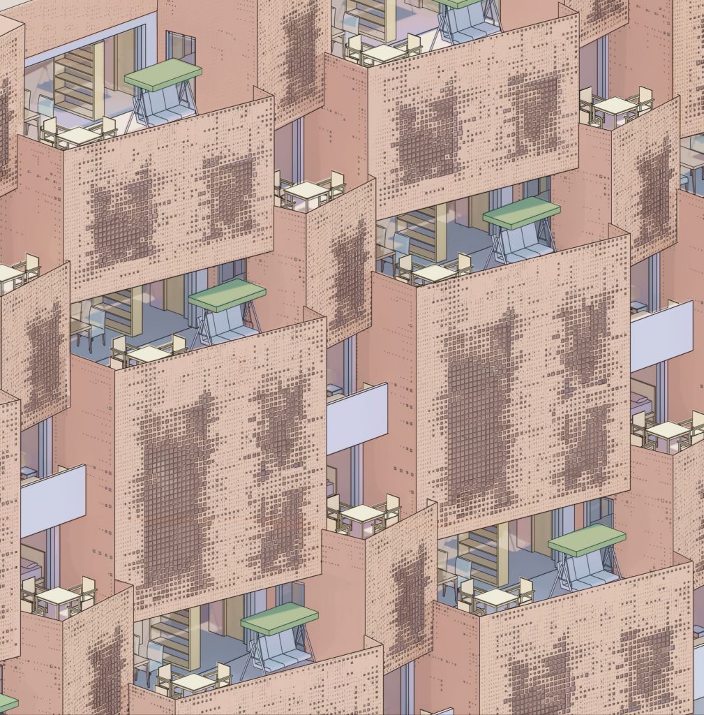 By closely examining the morphological and material mishaps in Grenfell Tower’s cladding, this residential project devises an alternative surface morphology to delay the concurrent propagation of flame. A dynamic aggregation of mixed tenured housing units makes use of this endeavour. Within a single cluster is a staggered hierarchy of one and two bedroom apartments and three bedroom duplexes. While the project addresses some of the most pressing concerns regarding fire safety, it simultaneously commits to providing a more diverse set of housing typologies to varied family sizes and incomes.