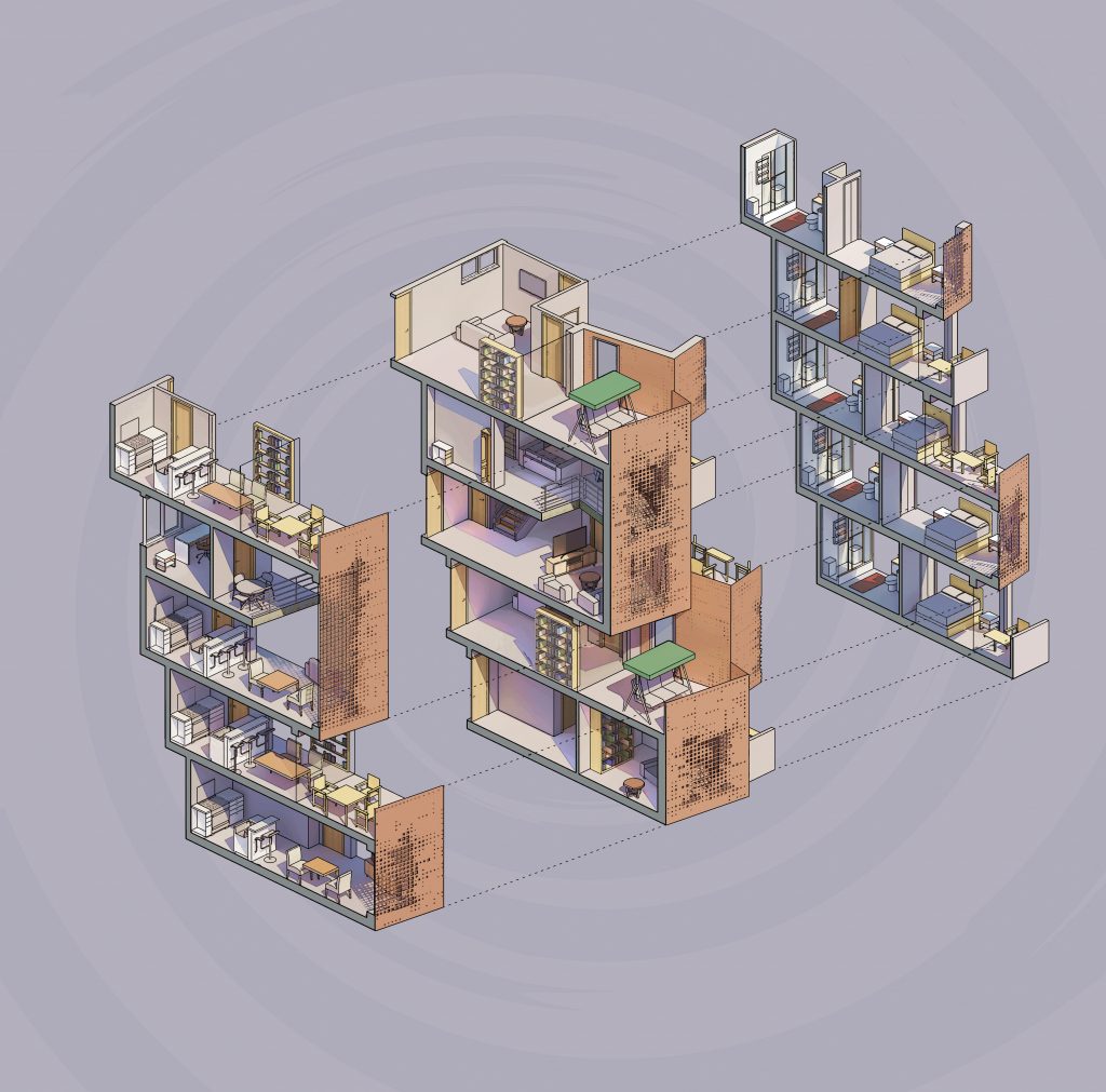 Stacking Dwellings according to Zain was created, “Following the catastrophic Grenfell Tower fire on June 14 2017, an extensive range of technical and public welfare discussions have surfaced throughout the architectural practice. The first phase of the public inquiry entailed a meticulous inspection of images and technical reports that were compiled before and after the incident. These harrowing accounts revealed duplicitous measures to retrofit Grenfell Tower in 2014 with combustible material. This self-serving decision had ultimately cost the lives of more than 70 residents.”