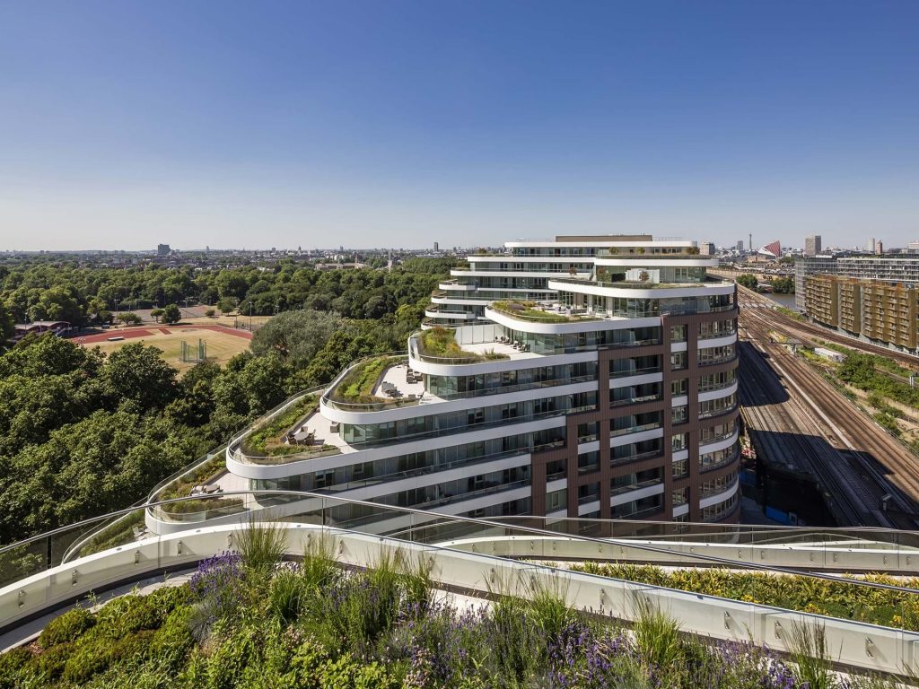 SB+C was challenged to create a structure that connects between the main Nine Elms development and Battersea Park. The design was focused on the views across the park by trying to embrace them and incorporating soft landscape wherever possible.