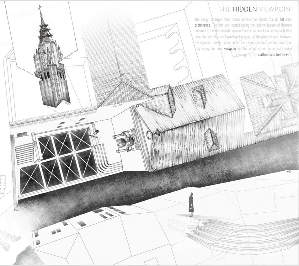 Below you will see how Miguel worked through the experience of being in this town, where the best view of the church is from different hidden angles and views that are not readily available or open to the general public. He further explains his perspective on the value of having hidden views, that allow an individual to have time to themselves while enjoying the cityscape.