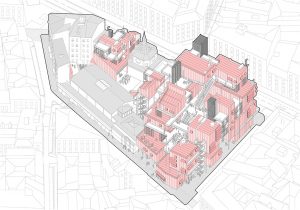 As you can see below, Miguel tries to keep the buildings compact to a specific block, in order to promote collaboration and a variety of levels of utility. Whether it be a community center or a large kitchen for community cooking or a library or a theater, all is considered and designed by Miguel.
