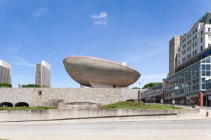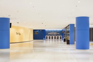Nelligan White designed a new interior entrance for Empire State Plaza’s Egg. The focus of this project was to assist visitors, in particular, those coming in from the new Albany Capital Center, with wayfinding. Nelligan White’s goal for this project was to increase the size of the pre-function event space and improve its acoustical capabilities. Our plan for this space also included improving guest experience through increased visibility and wayfinding. In order to achieve this, we moved the box office into the walkway for easier access and replaced the corner of the lobby with a glass façade. This kept views to the Egg and connecting Concourse Gallery open.