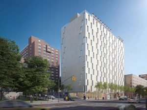 This 200 unit residential building is being developed as part of New York City’s efforts to create new housing for working New Yorkers, and as well a critical piece of the NextGeneration NYCHA 10-year strategic plan to protect public housing through investment in their underutilized property. The 14-story 189,000 square foot building will occupy what is now a NYCHA parking lot, and will house some 350-400 residents. The ground floor commercial space is geared toward community-benefitting uses including day care and a fresh grocer. In line with community input the mix and size of apartments is geared towards working families from the neighborhood. Apartments surround a south-facing common courtyard and a photovoltaic array will supplement electric needs.