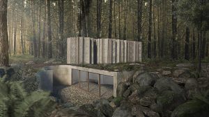 The existing site condition is the catalyst for the project – an abandoned and entirely subterranean industrial concrete vault from the 1930s, discovered on a wooded area of a 36 acre (mostly) undeveloped inland property in The Hamptons. The vault is accessed through an at-grade hatch that is barely visible – thus our proposal is first a “Well” in the manner that it negotiates the earth – a stair bulkhead to an underworld.