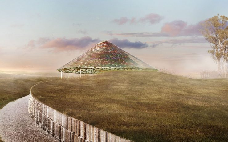 “Other Spaces” studio has unveiled what will be California’s first wine tasting pavilion for producer The Donum Estate. The building’s design represents a vertical panorama through the landscape and the conditions that make a vineyard prosperous, proposing a holistic experience that addresses all the senses. The colored glass tiles on the roof represent an abstract calendar showing yearly averages of parameters such as wind intensity, temperature and humidity.