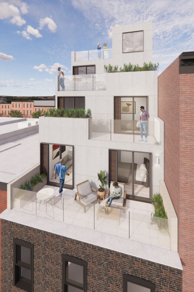 The Push | House is a significant horizontal and vertical enlargement of a two-story masonry townhouse. The renovation nearly triples the size of the original structure by adding 3 stories and a rear horizontal extension. The owners and their two children wanted to expand their own residence and decided to maximize the lot’s available development rights to create additional rental units above. The owner unit occupies the basement, ground floor and half of the 2nd floor while four additional units are situated on the upper floors.