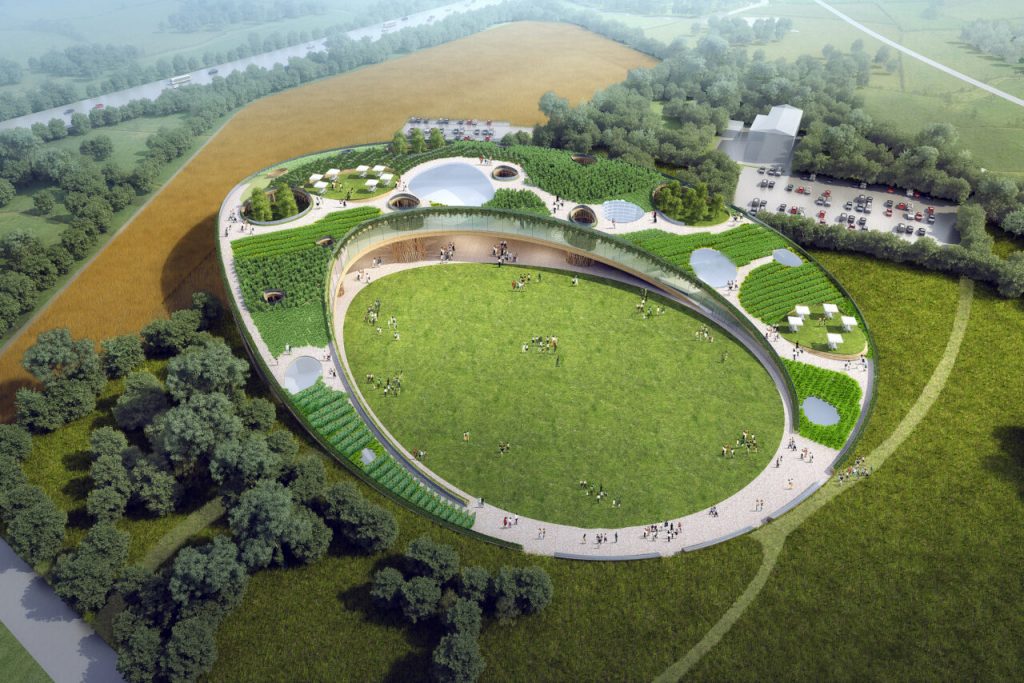 The Seed Pavilion moves from being fully submerged at its south end to being lifted ten meters above grade at the north. The shifting elevations and dynamic floors provide a multiplicity of experiences. The relationship of the building to landscape constantly changes as one moves through and around the pavilion. The four larger structural courts contain floors allocated to building staff and researchers, allowing them a degree of privacy in the otherwise continuous open space within the building.