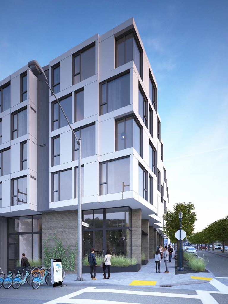 For this competition-winning project, Edmonds + Lee Architects teamed up with a local developer to acquire a city-owned parcel on Octavia Boulevard. Our proposal honors the strong Hayes Valley and San Francisco tradition of multi-family residential housing set over a vibrant, pedestrian-orientated commercial presence. The 27-unit Parcel T both blends seamlessly into the existing fabric of the city, and expresses itself as a significant work of contemporary architecture.