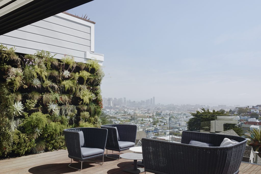 For this four-story family residence, the architects experimented with vertical circulation and crisp white materiality to create a spacious, vibrant, and geometrically engaging house. Organized around a singular central spine, the project is an exploration of fluid continuity and volumetric adventure. On a down-sloping hillside parcel of land in San Francisco’s Noe Valley sits this four-story project that embraces vertical stacking and crisp materiality for a tightly-knit family unit of three.