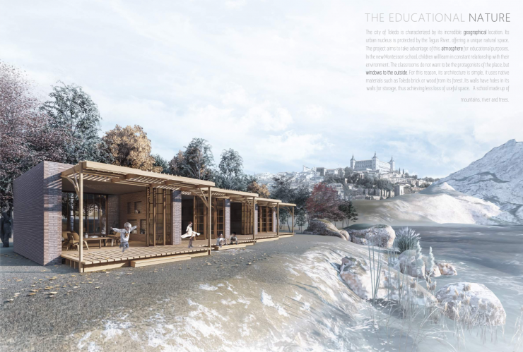 Miguel Majano Díaz is a member of our Architect-US Job+J1 Visa Program, and previously submitted The Exposed Interior. This time around he is submitting a project called The Educational Nature, which takes on educational design for a Montessori school on the Tagus River in Toledo, Spain. Miguel went to Universidad de Castilla – La Mancha for his degree in Architecture, and has been working towards finding a new opportunity in New York City, more specifically in Educational Building design.