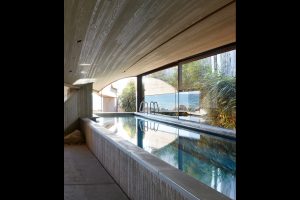 We replaced an awkward 1990’s addition, incongruent with the original Lautner residence, with a new indoor swimming pool that was designed to be largely indistinguishable to Lautner’s building. The new state-of-the-art, wake-free lap-pool is surrounded by retractable glazing which lets in natural light, and the ocean’s smells and sounds, blurring the boundaries between sea, house, and sky.