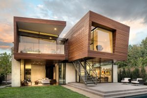 The home was designed with green practices in mind; LED lighting is used throughout, and photovoltaic panels are incorporated into the roof. The hulls are clad in a composite of rice husks, water, and mineral oil that simulates wood, but is far more robust and sustainable.