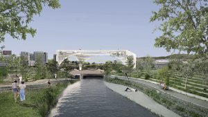 This porous structure strives to embody the 21st Century spirit of San Jose’. Its permeability seamlessly ties together the urban and natural landscape.