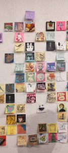 This is the perfect example of the most random one that I was able to visit. The gallery was packed with tiny art on post-its! The white spots are the ones already sold, so as you can imagine, how full were those walls!