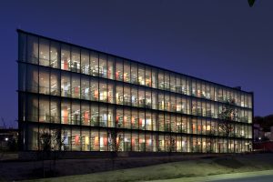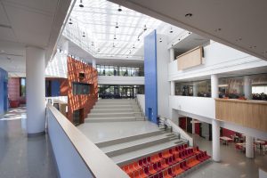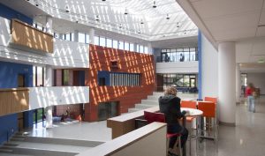 George Sexton Associates provided lighting design services for the construction of this new LEED gold certified college center. Comprised of a high-tech library, the building also brings together classrooms, a café, an art gallery, a radio station, a community service center, meeting rooms, and a “Forum” space. The electric lighting systems were designed to support the activities and architectural expression of the faculty in a responsible budget-conscious manner. Daylighting design primarily focused upon the Forum space where the challenge was to foster a truly open-to-the-sky experience that is comfortable for all users.