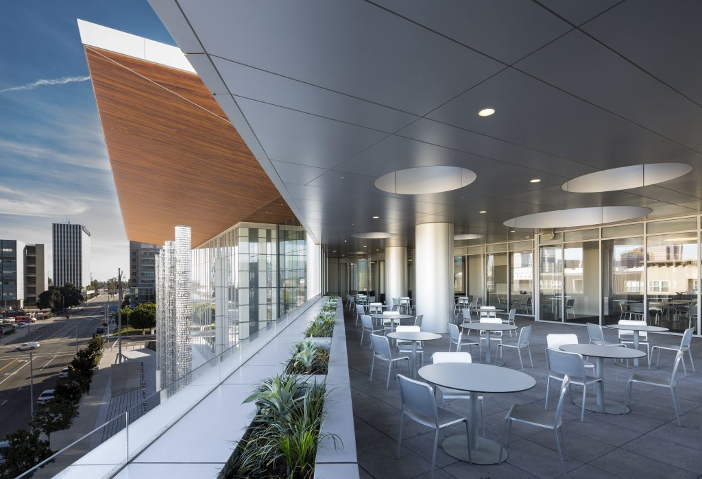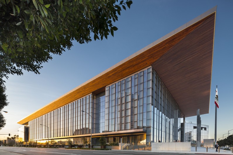 The new 531,000-square-foot courthouse replaces an outdated facility that suffered from overcrowding and required safety and security updates. The project occupies six acres in the city’s redevelopment area, bounded by West Broadway, Maine Avenue, West Third Street, and Magnolia Avenue. The facility houses 31 courtrooms—with expansion space for six more—offices for county justice agencies, retail space compatible with court uses, and an interior courtyard. The scope of work also includes the renovation of the nearby existing parking structure, and the enhancement of surrounding streetscapes.