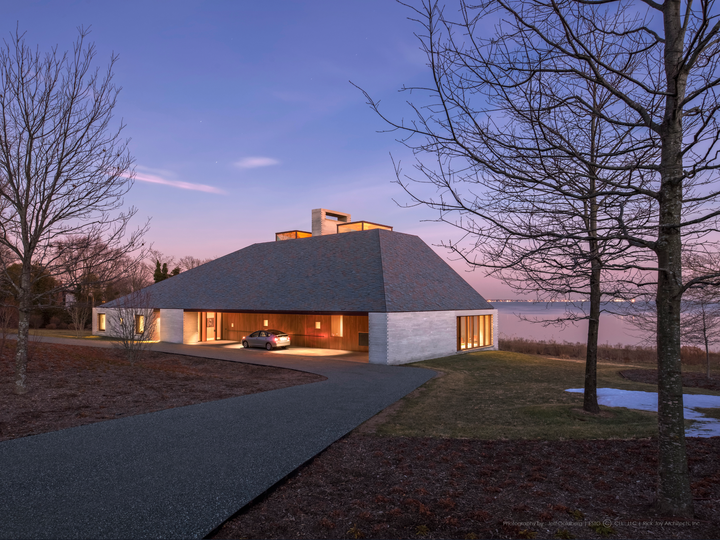 Daylight pours into the spacious living area from the South East window-wall, which offers expansive views of the bay and horizon. Flush recessed downlights were installed at the exterior overhang to reduce the reflection and self-reflection of a mirror image at night. The Energy Saving Technology’s minimal ceiling recessed trim-less fixtures allow for a unified and consistent look throughout the house. Their linear integrated casework fixtures, along with a variety of accessories, lenses, and trim options, provide the best possible lighting for the majority of the space.