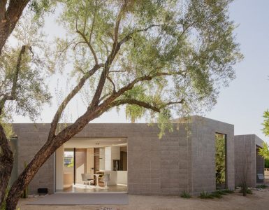 A new angular residence has been completed by SAOTA Studio in the hills of Los Angeles. The home is intended to provide privacy while drawing in the “calm and serenity” of the surrounding landscape. The 609-square-meter home has two main levels, a basement and a rooftop terrace. Roughly V-shaped in plan, the building has an angular shape that was driven by the orientation and geometry of the site. Different treatments were used on the facades.