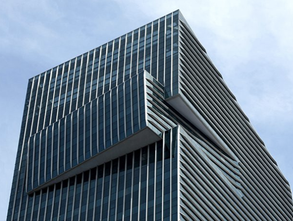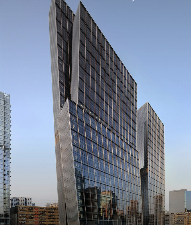 Landmark East is a twin tower development in Hong Kong’s Kwun Tong district. In order to maximize leasing flexibility, Arquitectonica used floor plates with varying sizes between the towers when designing this structure. Tower One has 36 leasable office floors spread across 43 stories. With an average floor plate of 13,455 SF (1,250 SM), there are 484,376 SF (45,000 SM) of total floor area available. Tower two has 34 leasable office floors spread across 40 stories.
