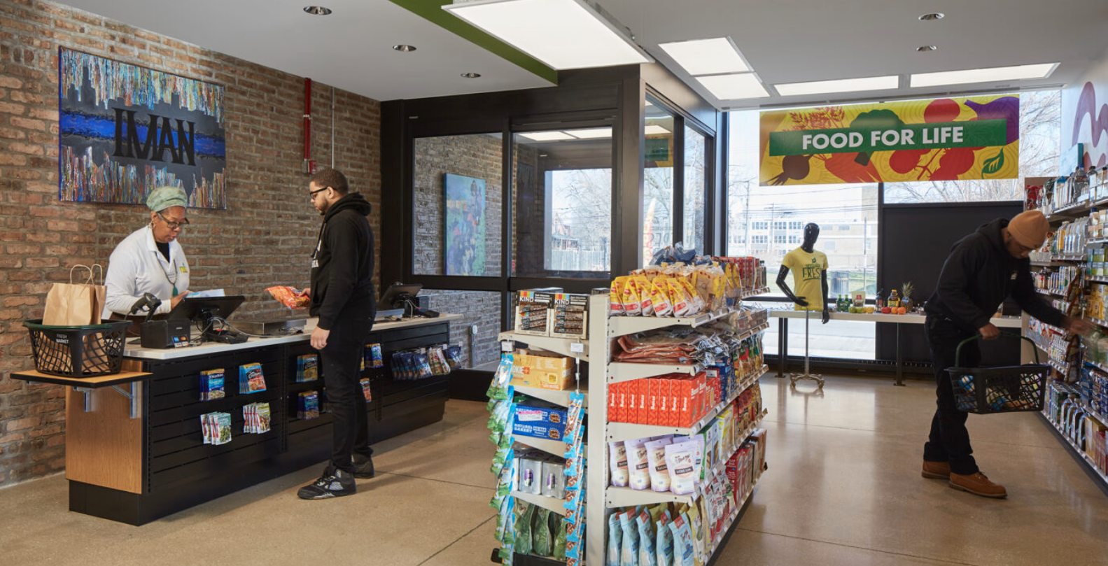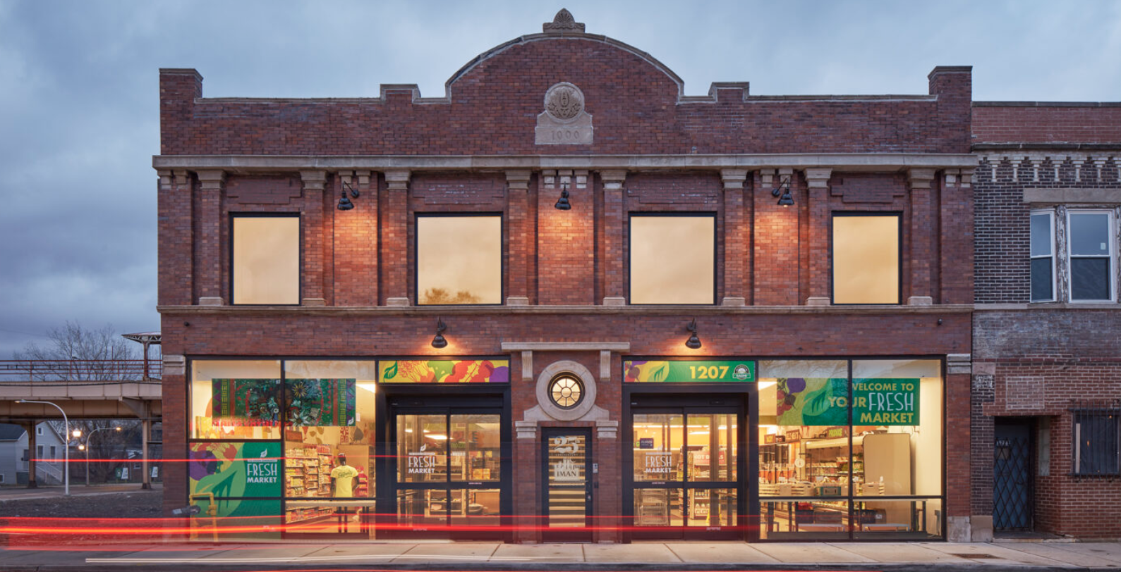 Many low-income Chicago neighborhoods lack access to grocery stores that sell healthy foods, instead relying on corner stores that sell mostly processed foods and have a limited supply of fresh food. With great ambition, The Fresh Market reimagines the urban corner store typology. It is still a familiar location, but it offers much more than just a regular store—it offers a dignified shopping experience, with locally sourced produce and ready-to-eat meals made by Chicago-area chefs. For about 6,000 residents, The Fresh Market is the only fresh produce retailer within a 10-minute walking distance. It’s a place to connect, a safe haven for fresh, healthy food, and a source of neighborhood pride and ownership.