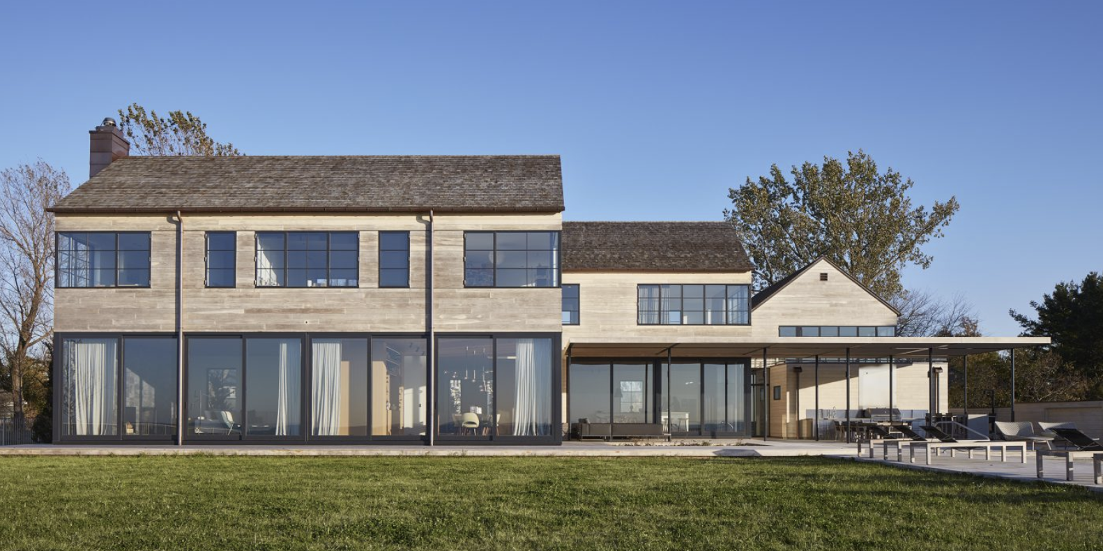 An arrangement of volumes deliberately shapes distinct outdoor rooms and creates smaller, more defined interior living spaces in order to deconstruct the massing and scale of the enclosures as well as the open site. Traditional and modern are gracefully blended together by vernacular forms with polished black metal windows and doors, all covered in soft, weathering materials. The “neighborhood” facade that faces the street is formally expressed with privacy-protecting punched openings made of crisp black steel. On the other hand, floor to ceiling glass on the lakeside offers a connection to Lake Michigan and expansive views of the west dunes.