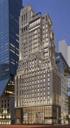 Mandarin Oriental Residences, Fifth Avenue is a restoration and vertical extension of an existing 20-story structure. The office building made of steel and concrete was built in 1926, and an expansion was made in 2000. In the new renovation and enlargement, eight more stories will be added, along with a mechanical penthouse, and the existing fifteen floors will be converted to residential usage. In addition to 69 opulent apartments, the new residences feature a roof deck, pool, residents’ club, spa, and gym. Currently utilized as retail floors, the lower five levels will stay open throughout construction.