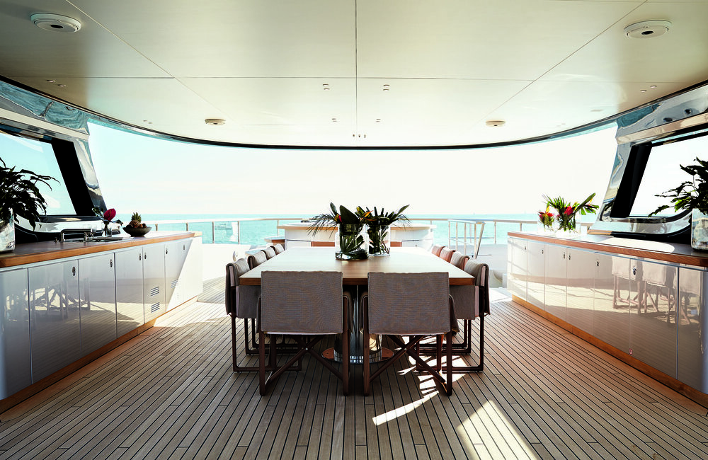 bonetti/koszerski developed the interiors for OASIS 135, a 41-meter displacement yacht with a fiberglass hull and superstructure and a layout spanning four decks, as its first collaboration with Benetti, one of Europe’s oldest and most prominent luxury yacht builders.