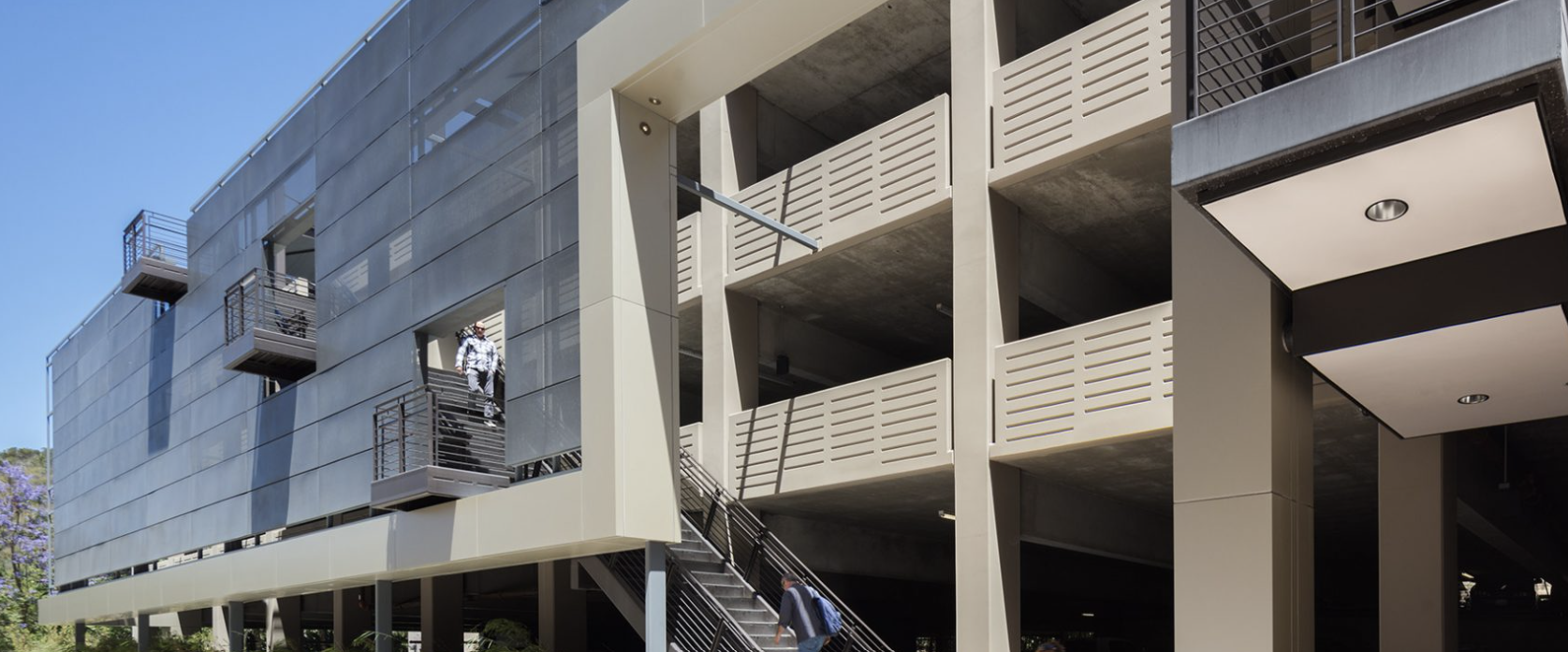 The building was designed with the local topography in mind. It has several views of the mountains in the area, a distinctive roof line that mimics the distant hillside’s silhouette, and a color scheme that echoes the warm tones of the granite found there. Visible from the surrounding streets, the facility features a glazed stairway known as the “jewel box” that opens towards the community.