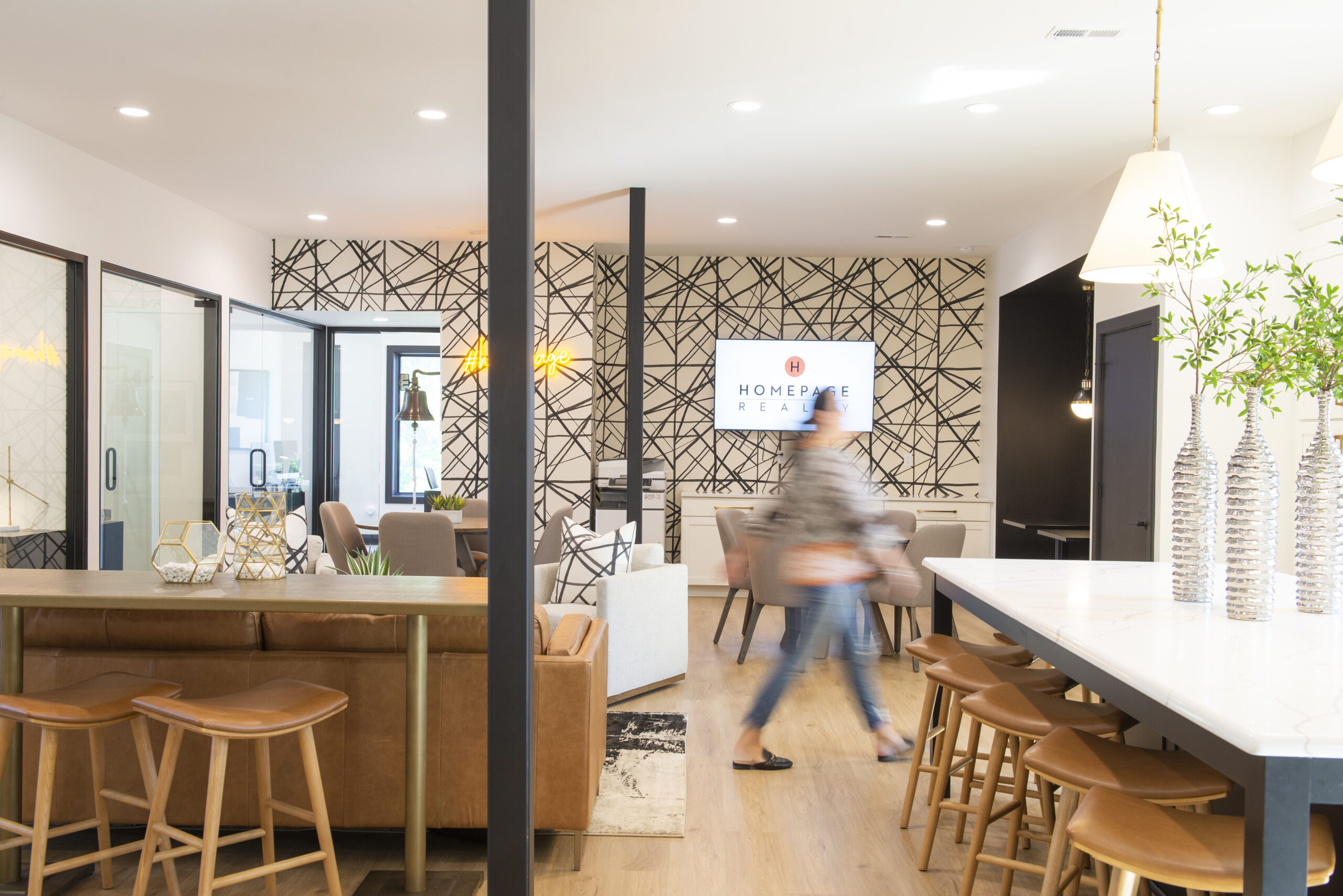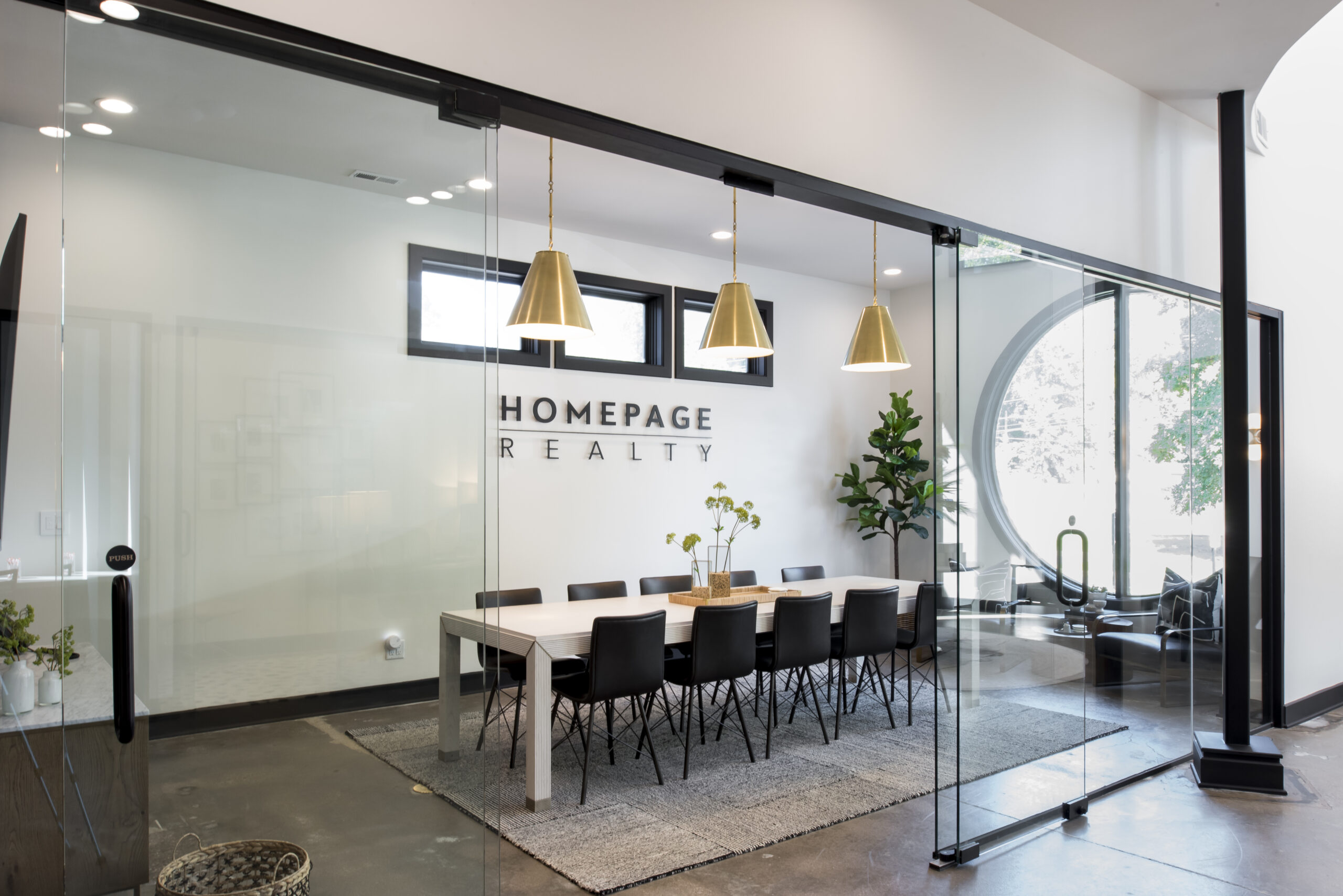 With its rapid expansion in recent years, Homepage Realty set out to establish a new center for its agents and customers. Complying with their agents’ mobile workflow, the office was made to be adaptable and cooperative. Within the constrained space, a variety of meeting room sizes and designs were needed, along with the ability to accommodate clients and business gatherings. The space was intended to feel welcoming, bridging the corporate and residential sectors. Originally a residential firm, it has more recently ventured into the commercial sector. The existing structure had a distinctive geometry and served as a live-work space. In order to create a workable office space, the design team leaned into the existing geometry.