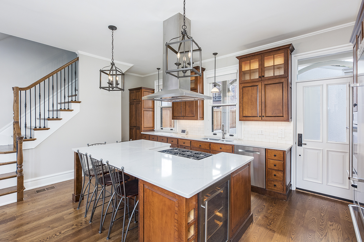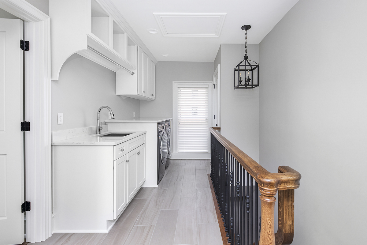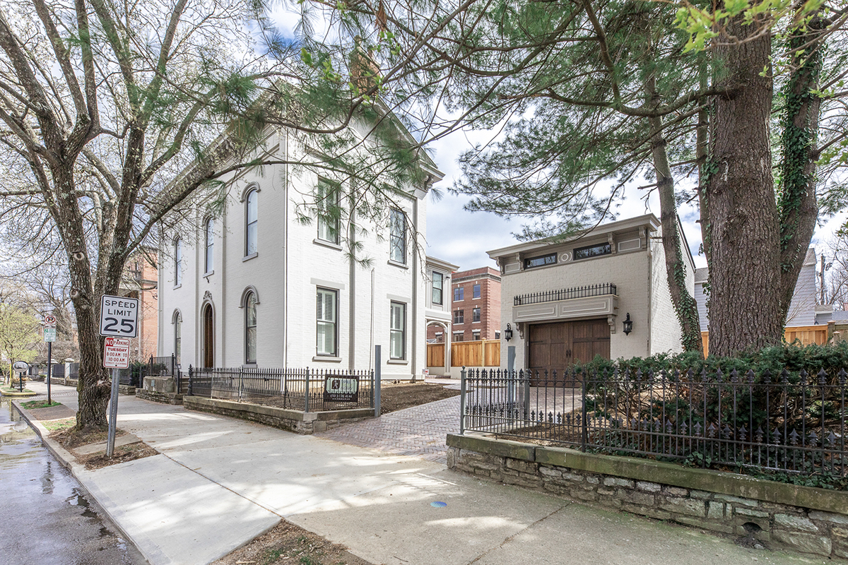 A 2-story addition and garage were designed to complement the Italianate home on a challenging small lot in the historic neighborhood of Licking Riverside. The neighborhood’s character is echoed in small details like paneling, arches, and a planted window box above the garage door. The owners plan to install a spiral staircase and wrought iron driveway gate soon.