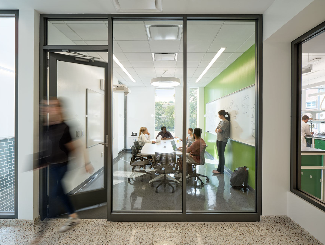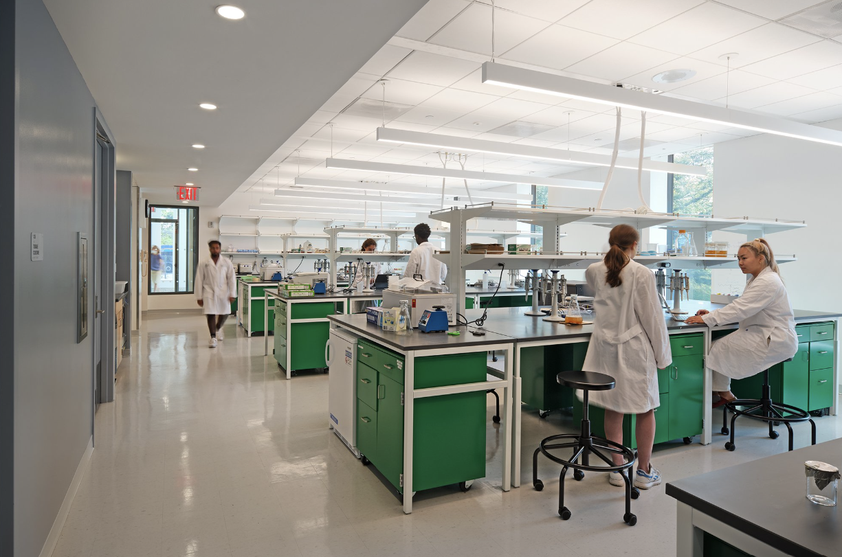 Three multidisciplinary labs, an animal room, a walk-in cold room, a tissue culture room, a microscopy room, a sterilization room, and a multipurpose room for special events are all housed in the building. Similar to a professional laboratory, these spaces are adaptable and modular to accommodate changing equipment and scientific needs. A computational room is available for group discussions, lectures, and the evaluation of experiment data in each lab.