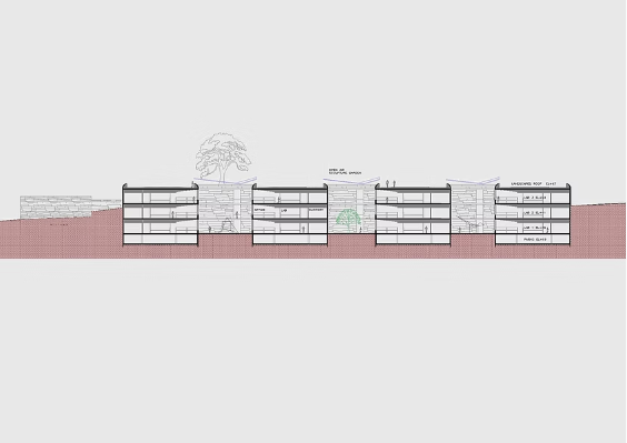 The design features a series of branching structures that accommodate research spaces, integrated into the hillside’s natural slope. Courtyards allow natural light—a crucial element for meticulous scientific work—to illuminate the laboratories, while also offering tranquil spaces for researchers to relax.