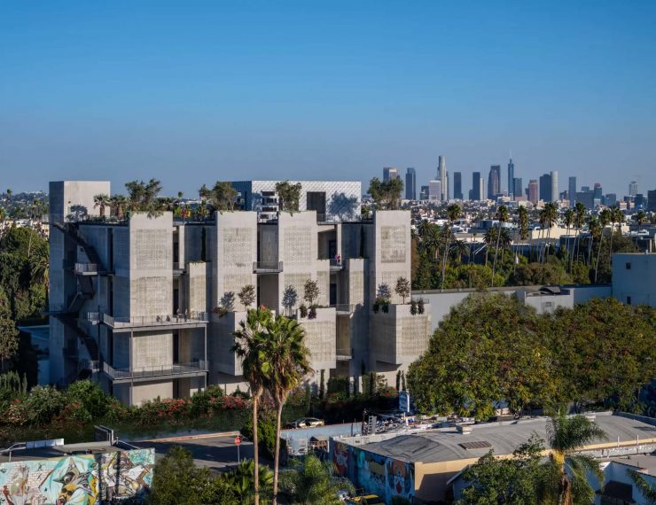 Lehrer Architects and AyD have transformed the Hollywood Forever Cemetery in Los Angeles with an innovative open-air “vertical mausoleum”. The structure, which combines thick concrete slabs, open spaces and vegetation, rises 30 meters and blends into the landscape with imposing elegance, making it one of the tallest mausoleums in the United States.