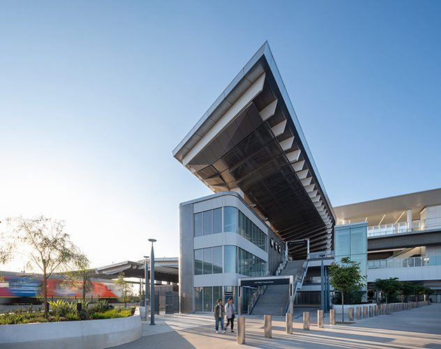 Grimshaw Studio, in collaboration with Arup and Gruen Associates, has completed the new LAX/Metro Transit Center, a train and bus station located just outside Los Angeles International Airport. This infrastructure, part of the ambitious Ground Access Modernization Program, connects directly to the urban core via the K and C subway lines, significantly improving mobility for residents and visitors.